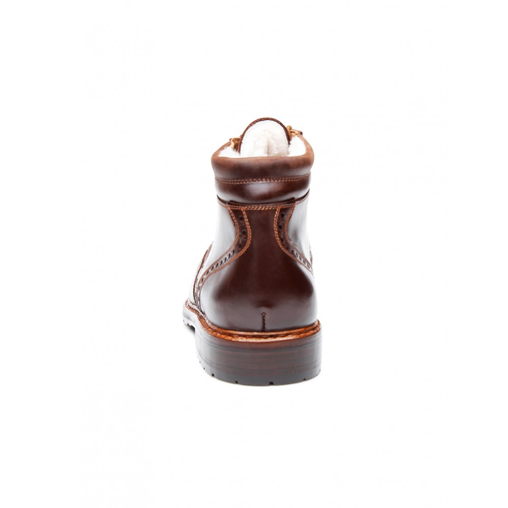 This model is a Boot lined with warm lambskin with wing cap and perforations. The original Budapest last is characterised by its high, slightly forward-tending tip.
