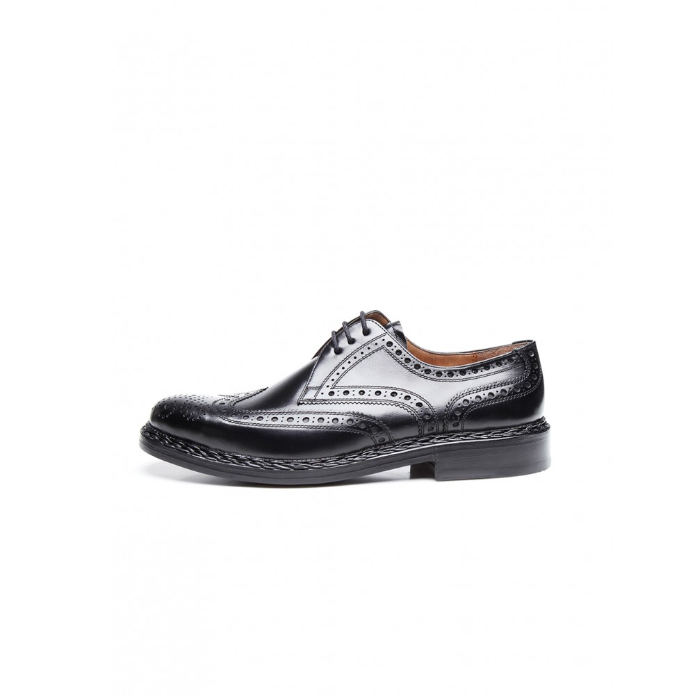 This model is a (full) brogue, with a wing cap and pinking and perforations.The original Budapest last is characterised by its high, slightly forward-tending tip.